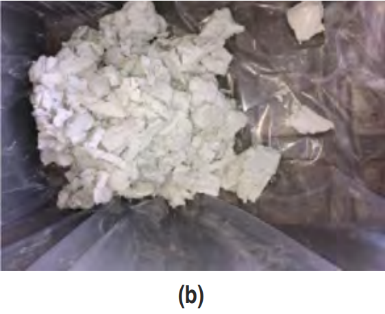 電爐粉塵成分(a),第1步驟原料成分和固體殘留物(b),固體殘渣外觀(c)