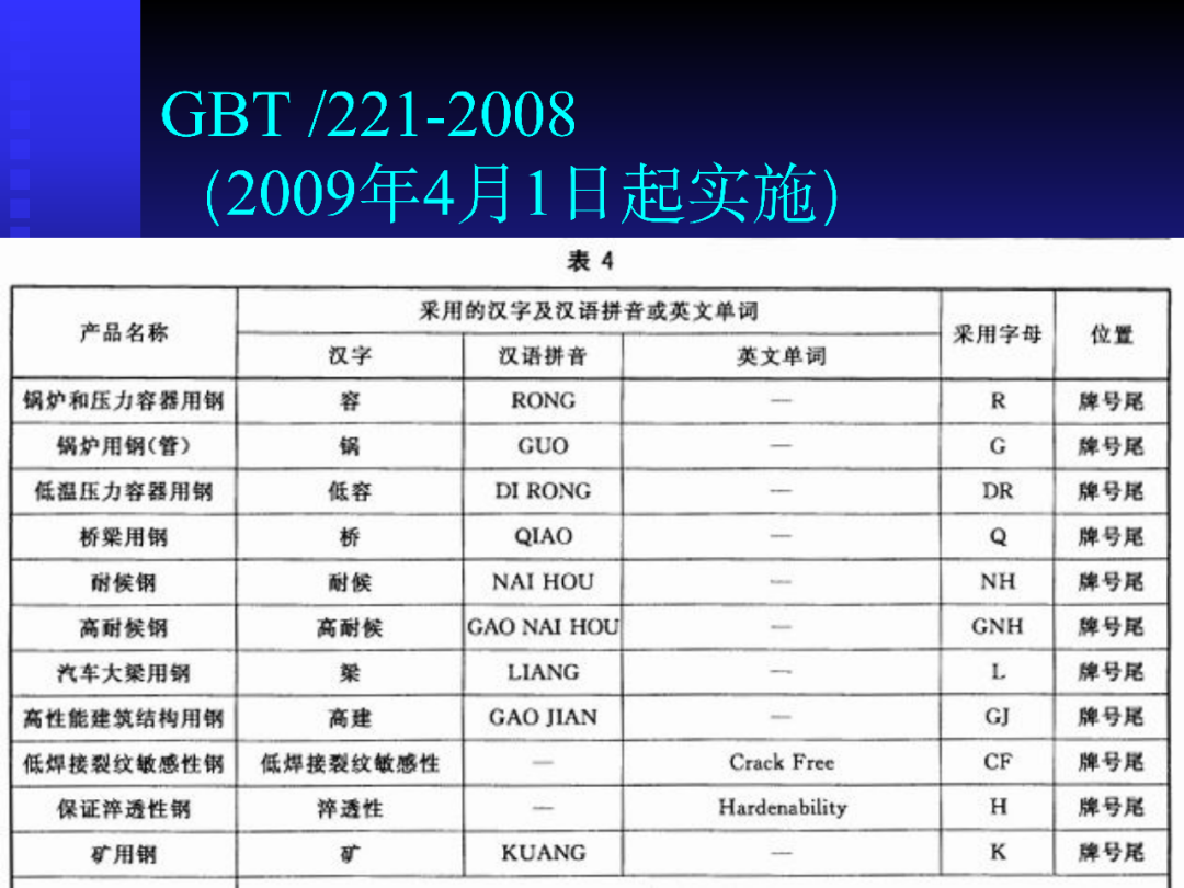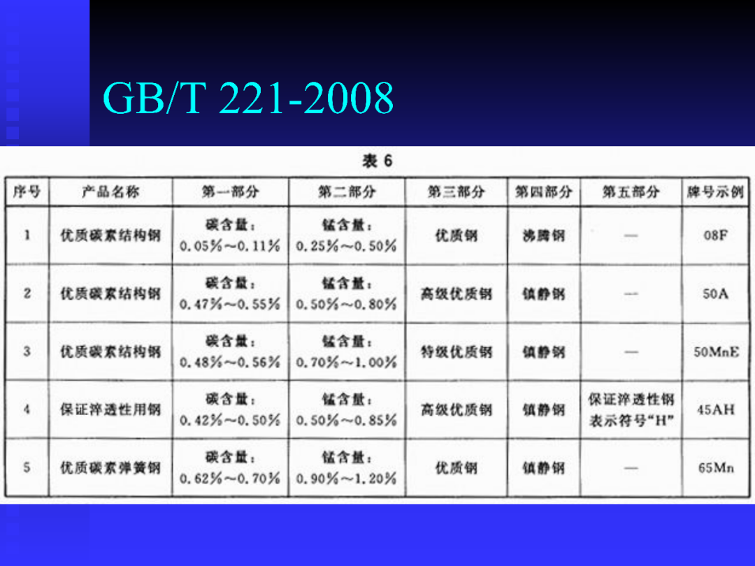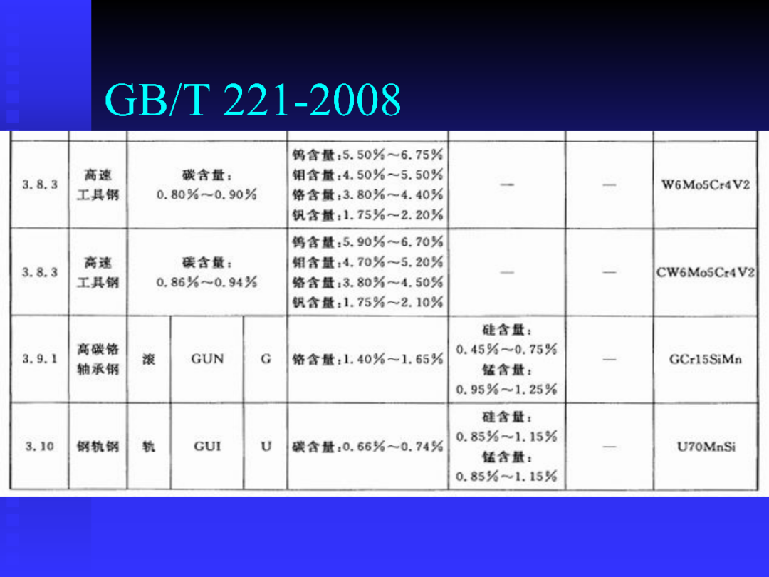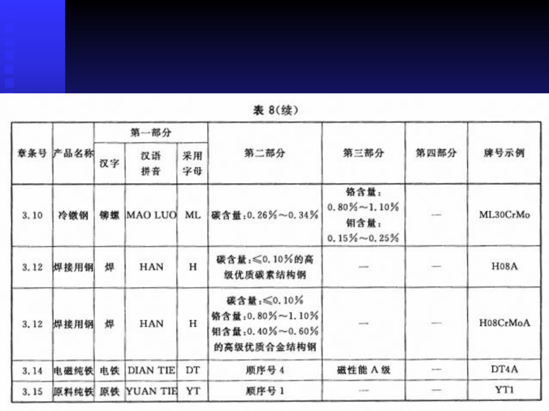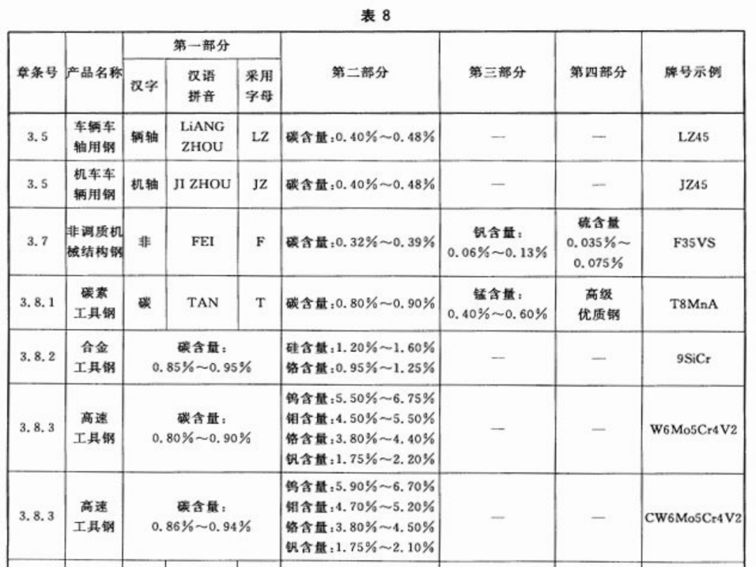常用鋼種的牌號(hào)