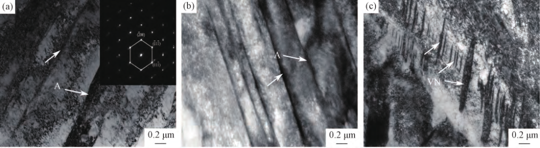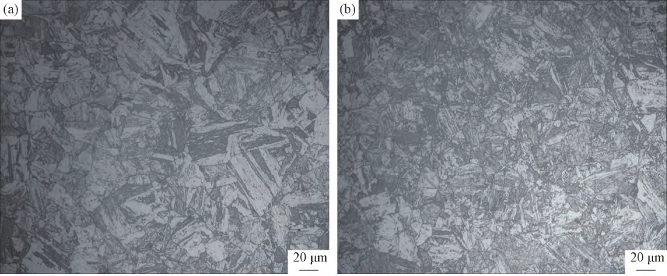 論文鏈接:10.13289/j.issn.1009-6264.2019-0569 本試驗采用真空感應(yīng)爐冶煉V含量分別0.06mass%和0.12mass%的超級馬氏體不銹鋼,其化學(xué)成分見表1。 研究發(fā)現(xiàn),兩種試驗鋼的基體組織都為板條馬氏體,0.12V鋼的原奧氏體晶粒尺寸和板條馬氏體束寬度均小于0.06V鋼,奧氏體的含量也小于0.06V鋼,表明V元素可以細化晶粒,抑制逆變奧氏體的形成。 0.12V鋼熱處理后的抗拉強度和屈服強度分別為1481和549MPa,與0.06V鋼相比分別提高了24%和28%,伸長率為13.4%,下降了24%,隨著V含量增加,試驗鋼的強度提高,韌性下降。 V元素主要通過細晶強化和析出強化提高試驗鋼的強度,通過影響逆變奧氏體的含量提高試驗鋼的韌性。 表1 試驗鋼的化學(xué)成分 圖1 不同V含量試驗鋼熱處理后的顯微組織(a)0.06V;(b)0.12V 圖2 不同V含量試驗鋼原奧氏體晶粒的顯微組織(a)0.06V;(b)0.12V 圖3 不同V含量試驗鋼熱處理后的TEM組織(a)0.06V;(b)0.12V;(c)VN形貌 圖4 不同V含量試驗鋼熱處理后的室溫力學(xué)性能(a)強度;(b)伸長率