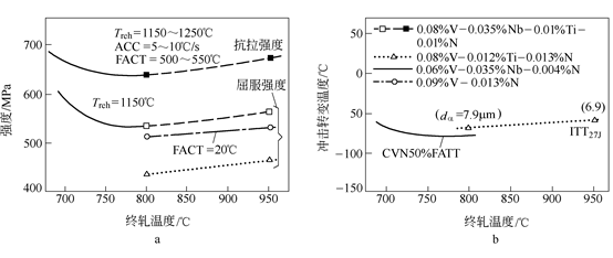 TMCP材料的性能取決于材料的組織。在諸多影響因素中,組織細化對性能的影響是最重要的。TMCP材料的組織細化可顯著提高材料的性能,例如,組織細化不僅可同時提高鋼的強度和韌性,而且還可以減輕晶界脆化、減少熱處理裂紋和形變、提高耐應力腐蝕性、改變鋼的物理化學性能等。