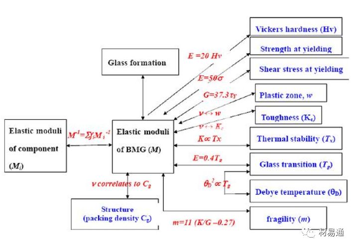 非晶合金中彈性模量和非晶形成能力和性能各種關(guān)聯(lián)圖示