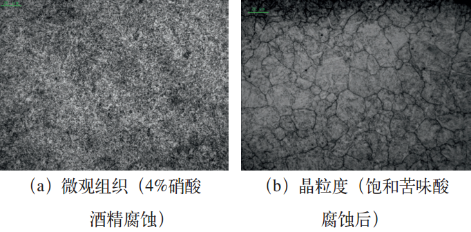 (1)微觀組織觀察 微觀組織顯示劑為4%的硝酸酒精,用德國蔡司Axio ImagerA2m金相顯微鏡進行觀察。(2)力學性能檢驗 依據ASTM A370標準對試樣進行縱向拉伸性能檢測,檢驗設備型號:SHT5605 60t。依據ASTM E23標準對試樣進行0℃縱向沖擊試驗,檢驗設備型號:NI300F。