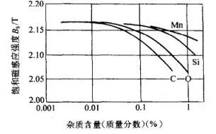 碳、氧、硅、錳等降低鐵的飽和磁感應強度(見圖10)。