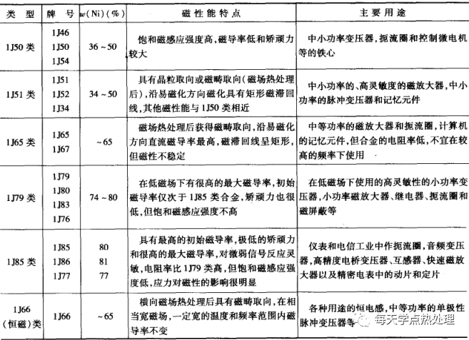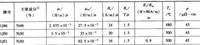鐵鎳軟磁合金的種類較多,根據其特性和用途可進行表3所示的分類。它們的主要成分和性能見表4。