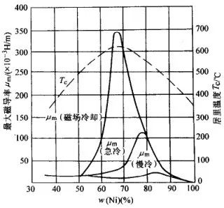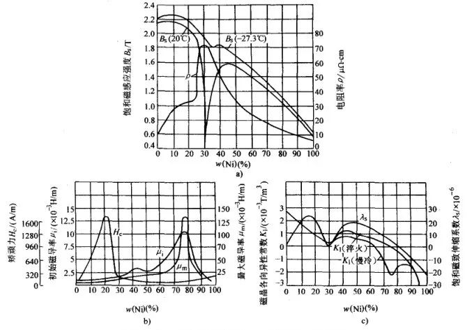 ▲圖18 鐵鎳合金的各種磁性能與鎳含量的關系