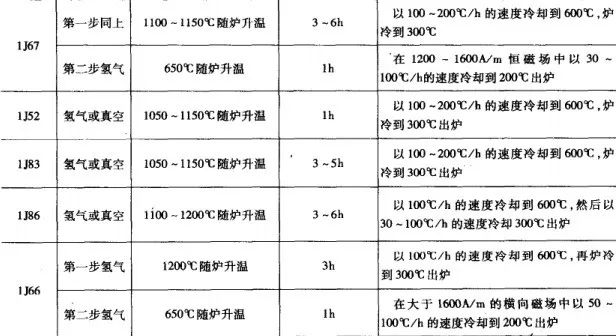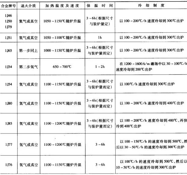 常用高導率、矩磁和恒磁鐵鎳合金推薦的熱處理工藝見表4。