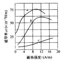 恒磁合金則進行橫向磁場退火,使磁場方向與應用時的磁化方向垂直。這時合金的μ值和Br值下降(圖24 中曲線c在曲線b之下),磁滯回線呈扁平狀,μ值在一定磁場強度范圍內變化不大。
