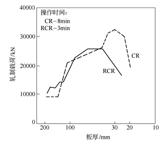 TMCP工藝是開發高性能厚鋼板的核心技術。采用TMCP工藝生產的厚鋼板與傳統的正火鋼相比具有突出的優點,它不依賴添加較多的合金元素,只用水冷來控制鋼的組織,就可以獲得高強度和高韌性,用很低的碳當量就可以制造出相同強度的鋼材,降低焊接預熱溫度或焊接不預熱,改善焊接熱影響區(HAZ)韌性,為采用大線能量焊接創造了良好的條件,如圖1所示。在保證鋼板的強度水平基本相同的情況下,采用TMCP工藝可使鋼的最低碳當量Ceq由0.38%降低至0.32%,降低了預熱溫度或不預熱,顯著改善了鋼的焊接性,減少了合金元素的添加量,降低了鋼的生產成本和裝置的制造成本。 圖1 TMCP鋼和正火鋼的強度與碳當量的關系 S.Zajac等人,以0.01%Ti-0.08%V-0.013%N鋼為例,研究了RCR(再結晶控軋)、RCR+ACC(加速冷卻)、CR(控制軋制)等不同軋制工藝對力學性能的影響,結果示于圖2。由圖可以看出,在RCR、RCR+ACC、CR各種工藝條件下,鋼的低溫韌性都比較好,沖擊轉變溫度ITT40J均低于-80℃,但仔細比較時還是CR控軋工藝處理的鋼韌性最好,這是由于在CR控軋條件下,形成了非常細小的鐵素體晶粒,加速冷卻后進一步細化了晶粒,提高了鋼的低溫韌性。CR控制軋制工藝是在比較低的溫度下進行的,在終軋道次期間在奧氏體中析出了部分VN,因此,采用CR控軋工藝的鋼板雖然獲得了細小的鐵素體晶粒尺寸,但其強度仍比RCR+ACC工藝軋制的鋼板強度略有降低。 圖2 不同生產工藝對0.01%Ti-0.08%V-0.013%N鋼板力學性能的影響 Siwecki等人研究了低溫控制軋制(CR)對0.01% Ti-0.04% V(HS-350)鋼和0.01%Ti-0.085%V-0.04%Nb(W-500)鋼厚板力學性能的影響,結果示于圖3a、b。由圖可以看出,終軋溫度對鋼的屈服強度有影響,當終軋溫度從840℃降低至730℃時,鋼的屈服強度明顯上升。由圖還可以看出,鋼板的強度和韌性不僅與終軋溫度有關,還與鋼板的厚度和冷卻速率有關。隨著鋼板厚度的減小,鋼板的強度上升但韌性降低。這符合鋼板厚度不同引起性能變化的尺寸效應的一般規律。 圖3 商業化生產的0.01%Ti-0.04%V(HS-350)和0.01%Ti-0.085%V-0.04%Nb(W-500)控軋鋼的力學性能和鐵素體晶粒尺寸與終軋溫度(a)和板厚(b)的關系 與控制軋制(CR)工藝相比,再結晶控制軋制(RCR)工藝具有明顯的工藝優勢:生產效率高、軋制載荷小、鋼板平整度好和殘余應力水平低,如圖4所示。由于控制軋制(CR)工藝是在奧氏體未再結晶區軋制,軋制溫度較低,軋制變形抗力大,一次變形和累積變形都比較大,導致軋機負荷增加,最大軋制力提高約25%,這對老軋機比較難適應,必要時對老軋機應進行技術改造。由圖4還可以看出,控制軋制(CR)工藝所用操作時間比較長,這是由于板坯的加熱溫度比較高,特別是含鈮鋼,為使合金元素充分固溶,加熱溫度應不低于1200℃,而控制軋制(CR)又主要在奧氏體未再結晶區的低溫下進行,由高溫到低溫的冷卻需要耽擱時間,必要時還要待溫,也需要一定的時間,再加上軋制道次比較多,因此控制軋制(CR)工藝的生產效率比較低,而再結晶控制軋制(RCR)工藝具有更高的生產效率。此外,再結晶控制軋制(RCR)工藝的終軋溫度比較高,有利于控制鋼板的平整度,減小鋼板的殘余應力水平。 圖4 Ti-V-N采用RCR和CR方法軋制時軋制力的對比