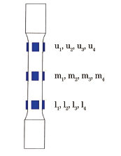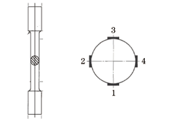1 試驗(yàn)設(shè)備與試驗(yàn)方法 1.1 試驗(yàn)設(shè)備 根據(jù)ASTM E1012—2014,4個(gè)應(yīng)變片位于試樣棒的不同方位的同一層,總共8片或者12片應(yīng)變片布置在試樣棒的第2層或者第3層,如圖1所示。 圖1 ASTM同軸度標(biāo)準(zhǔn)試樣棒示意圖 用于檢測(cè)同軸度的裝置包含標(biāo)準(zhǔn)試樣棒和12通道數(shù)采系統(tǒng)和分析軟件。這套裝置由德國(guó)ZwickRolle集團(tuán)制造提供。 用一臺(tái)精度等級(jí)為0.5的50kN的材料試驗(yàn)機(jī)來(lái)執(zhí)行此次的比對(duì)試驗(yàn)。多通道數(shù)采系統(tǒng)為QuantumX type MX1615B型多通道數(shù)采系統(tǒng),激勵(lì)電壓為10V全橋設(shè)置。該設(shè)備一共有12路通道,對(duì)應(yīng)于標(biāo)準(zhǔn)試樣棒上的12片應(yīng)變片。 根據(jù)中國(guó)檢定規(guī)程JJG 475—2008《電子試驗(yàn)機(jī)檢定規(guī)程》和JJG 556—2011《單軸疲勞試驗(yàn)機(jī)檢定規(guī)程》,同軸度檢定裝置是一套雙引伸計(jì)。雙引伸計(jì)顧名思義就是有兩個(gè)引伸計(jì)。一個(gè)安裝在被檢試棒的左側(cè),而另一個(gè)安裝在右側(cè)。引伸計(jì)是用來(lái)測(cè)量在拉伸過(guò)程中試棒的延伸量。如果試驗(yàn)機(jī)的同軸度是理想的話,那么理論上說(shuō)兩個(gè)引伸計(jì)測(cè)出來(lái)的試棒的延伸量是一樣的。 1.2 試樣棒制備 試樣棒的具體信息見(jiàn)表1,試樣棒尺寸如圖2所示。 表1 試樣棒的信息 圖2 試樣棒的尺寸示意圖 1.3 試驗(yàn)方法 1.3.1 根據(jù)美標(biāo)ASTM E1012—2014 (1) 把標(biāo)準(zhǔn)試樣棒上端夾持住,信號(hào)清零,然后夾持下端。機(jī)器先施加一個(gè)很小的力,檢查所有12路信號(hào)是否正常反應(yīng),然后卸載。 (2) 平穩(wěn)驅(qū)動(dòng)機(jī)器施加到機(jī)器滿量程的4%,6%和8%,也就是2kN,3kN和4kN。計(jì)算機(jī)軟件會(huì)分別記錄在這3個(gè)載荷點(diǎn)時(shí)候的信號(hào)數(shù)據(jù)并進(jìn)行分析計(jì)算。(美標(biāo)原版上要求施加滿量程的10%,20%和40%,為方便比對(duì),該次試驗(yàn)只加載到滿量程的4%,6%和8%)。 (3) 把載荷卸載到0,將標(biāo)準(zhǔn)試樣棒轉(zhuǎn)到180°位置,然后按照上述步驟再一次操作。 (4) 把載荷卸載到0,將標(biāo)準(zhǔn)試樣棒從180°方位轉(zhuǎn)回到初始位置,然后按照步驟2再一次操作。 1.3.2 根據(jù)中國(guó)檢定規(guī)程 (1) 把試樣棒兩端都夾持住。 (2) 加載一個(gè)力(機(jī)器滿量程的0.5%),然后把雙引伸計(jì)對(duì)稱安裝在試樣棒上,如圖3所示,驅(qū)動(dòng)機(jī)器到滿量程的1%載荷,然后把信號(hào)清零。平穩(wěn)驅(qū)動(dòng)機(jī)器加載到滿量程的10%,這個(gè)過(guò)程稱之為預(yù)加載。如此重復(fù)3次。 (3) 把載荷卸載到0,然后加載到1%載荷,并且把雙引伸計(jì)信號(hào)清零。然后平穩(wěn)加載到機(jī)器的4%,6%和8%,記錄所有數(shù)據(jù)。(原本是加載到4%,6%,8%和10%,為方便地對(duì)該次試驗(yàn)簡(jiǎn)化為4%,6%和8%)。 (4) 把雙引伸計(jì)拆卸,然后更換位置到如圖3所示處。重復(fù)步驟2和3的操作。 圖3 雙引伸計(jì)的位置示意圖 2 數(shù)據(jù)分析 根據(jù)美標(biāo)ASTM E1012—2014,按柱狀標(biāo)準(zhǔn)試樣棒的計(jì)算公式計(jì)算出了中間一層應(yīng)變片的數(shù)據(jù),見(jiàn)表2。可見(jiàn)得到的最小的彎曲度數(shù)據(jù)為10.7%,在加載力為4kN(機(jī)器50kN的8%載荷點(diǎn))時(shí)得到。 表2 ASTM標(biāo)準(zhǔn)試樣棒中間層應(yīng)變片的數(shù)據(jù) 根據(jù)中國(guó)規(guī)程的計(jì)算公式,計(jì)算出了同軸度的數(shù)據(jù),見(jiàn)表3。 表3 采用中國(guó)檢定規(guī)程測(cè)得的同軸度數(shù)據(jù) 對(duì)比表2和表3可知,采用美標(biāo)測(cè)得的彎曲度數(shù)值幾乎是采用中國(guó)檢定規(guī)程測(cè)得的同軸度數(shù)值的兩倍。 3 討論 對(duì)于同軸度的定級(jí),美標(biāo)和中國(guó)檢定規(guī)程是不同的。美標(biāo)只提同軸度等級(jí),而不是試驗(yàn)機(jī)的等級(jí)。而中國(guó)規(guī)程規(guī)定不同精度等級(jí)的試驗(yàn)機(jī)對(duì)應(yīng)不同等級(jí)的同軸度指標(biāo)。美標(biāo)定級(jí)為5,8,10級(jí),對(duì)應(yīng)的彎曲度為5%,8%,10%;中國(guó)檢定規(guī)程定級(jí)為0.5,1,2級(jí),對(duì)應(yīng)的同軸度為12%,15%,20%。 該次試驗(yàn)并沒(méi)有按照美標(biāo)要求施加足夠的載荷,因而不能得出結(jié)論說(shuō)彎曲度10.7%就不滿足試驗(yàn)機(jī)等級(jí)10級(jí)。該次試驗(yàn)的同軸度表明試驗(yàn)機(jī)滿足0.5級(jí),因?yàn)橥S度10.3%,符合標(biāo)準(zhǔn)要求的12%。 另外一個(gè)討論點(diǎn)是關(guān)于計(jì)量溯源。ASTM E1012—2014上說(shuō):“標(biāo)準(zhǔn)試樣棒的計(jì)量溯源并不做要求,但在加工制造標(biāo)準(zhǔn)試樣棒的時(shí)候要非常注意和小心。”這意味著,只有多通道數(shù)采是需要校準(zhǔn)溯源的。 對(duì)多通道數(shù)采進(jìn)行了校準(zhǔn),具體數(shù)據(jù)見(jiàn)表4。標(biāo)準(zhǔn)值和顯示值之間的偏差小于-0.3%,這是相當(dāng)理想的。 表4 多通道數(shù)采校準(zhǔn)數(shù)據(jù) 中國(guó)檢定規(guī)程的雙引伸計(jì)的校準(zhǔn)很容易,只要用標(biāo)準(zhǔn)引伸計(jì)(微分尺)對(duì)這兩個(gè)引伸計(jì)逐一進(jìn)行計(jì)量校準(zhǔn)就好,可以溯源到長(zh
