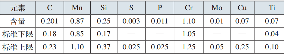 如附表所示,廢品零件化學成分符合標準要求,不是導致零件產生裂紋的原因。