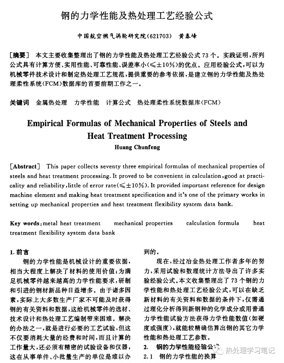大家好!今天分享鋼的力學性能及熱處理工藝經驗公式73個,供大家參考學習!