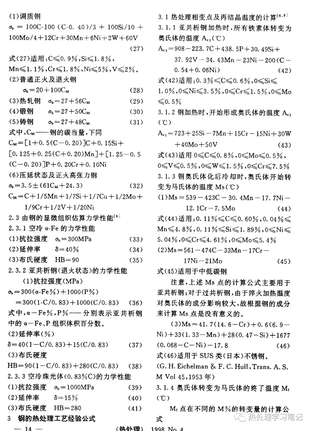 鋼鐵性能,機械性能,鋼鐵,熱處理,力學性能,熱處理,工藝,經驗,公式,計算公式