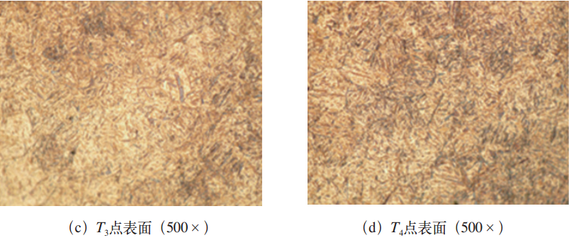 產品:外圈溝道FLHSN3035FT1,材質為42CrMo4+QT-EN10083,溝道淬火硬度58~62HRC,硬化層深度≥7.5mm(52.5HRC處)。實物如圖4所示,圖樣工藝要求如圖5所示,硬化層切割試塊如圖6所示,檢測結果見附表,金相組織如圖7所示。