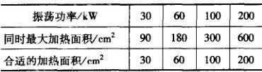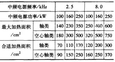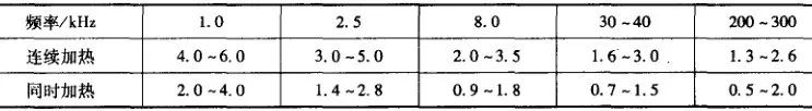 根據表7 所列數據,對某些功率的感應加熱設備可同時加熱的面積如表9和表10所示。