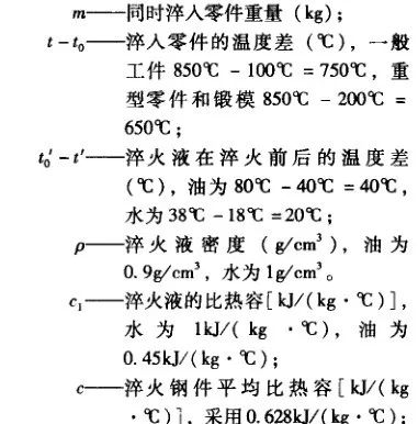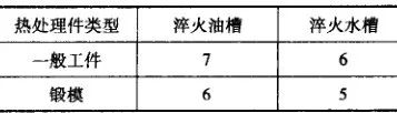 實際為便于制造和操作方便,一般淬火水槽與淬火油槽尺寸相同。以上計算的容積還需考慮淬火液溫度升高的體積膨脹及淬火工件的體積。