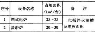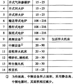 ▼表14-19 各類熱處理設備所占車間面積指標