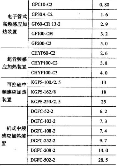 通常涉及所指單位功率為額定功率,表7 為單位功率的檢驗數值。常用感應淬火設備的效率見表8。