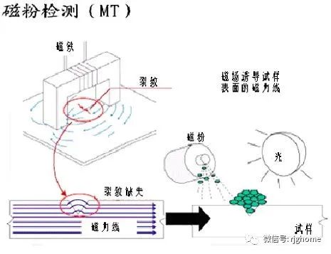 (2)螺栓磁粉探傷:螺栓是緊固件,受的是拉力,易產(chǎn)生橫向疲勞裂紋,所以應采用線圈縱向磁化,用剩磁法、較低濃度的熒光磁粉探傷效果最好。