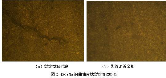 (1)通過分析,部分曲軸小頭表面存在鍛造傷,使小頭部位產生應力集中,增大了組織應力,促進了縱裂的產生;該批42CrMo曲軸原材料含有較高的碳含量和較高的合金元素,在調質過程中,組織應力較大,增大了淬火裂紋的產生傾向。