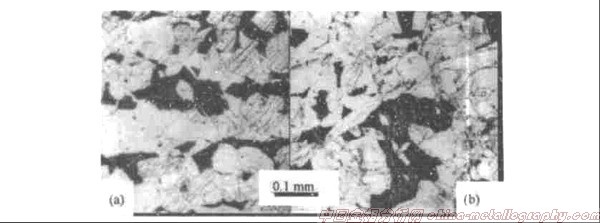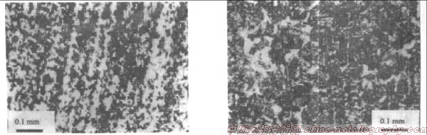 只有在一次帶狀的基礎上才能形成二次帶狀組織。一次帶狀難以消除,雖然在高溫下或緩冷過程中,碳能夠優先達到相對均勻,然而代位原子均勻化十分困難,這些合金元素難以達到均勻狀態,尤其碳化物形成元素阻礙碳原子的擴散,實際上碳也難以十分均勻。這就是樹枝狀偏析能夠穩定存在的原因。但是在具有一次帶狀的熱變形鋼中可以出現二次帶狀,也可以不出現二次帶狀,如圖2就沒有出現帶狀組織。控制相變條件就可以控制二次帶狀組織。