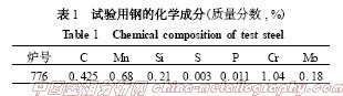 試驗采用42CrMo鋼軋材鋼棒,爐號有758,024,647,797,767,776。雖然爐號不同,但成分基本相同。爐號776的成分如表1所示。