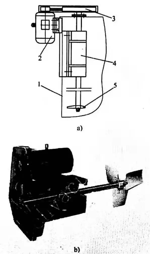 對于頂部直插式攪拌常常推薦選用圖4 b)所示的翼形螺旋槳,在相同轉速下,效率比常規船用螺旋槳高出40%。翼形螺旋槳攪拌推薦功率見表3 。