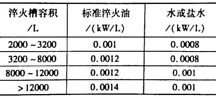 無攪拌淬火油槽,淬火件重量與油的體積比例一般為1:10 (t/m3);良好攪拌條件下的淬火油槽,上市比例可為1:5~8(t/m3)。