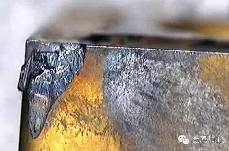劇烈的溫度波動與機械沖擊可能造成熱機械失效。應力裂紋會沿刀片刃口形成,最終造成刀片的硬質合金部分脫落,看起來有點類似于微崩。