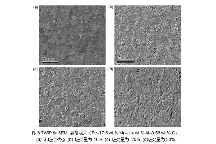 TWIP鋼通常添加鋁,是因為鋁能顯著增加SFE,因此,穩定奧氏體,防止Fe-Mn合金在變形的時候發生相變,同時,鋁可以通過固溶強化對奧氏體晶粒進行強化。