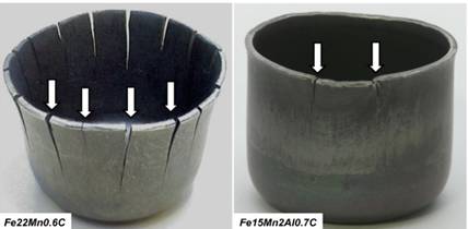 (左圖)TWIP鋼深沖件延遲開裂(Fe–22Mn–0.6C)