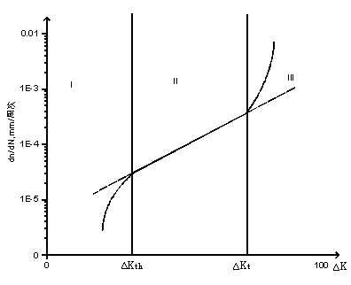 典型疲勞裂紋擴展速率曲線圖 如下: