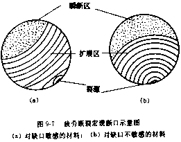對缺口敏感(材料外緣和芯部紋擴散速度不同),對缺口不敏感。