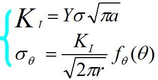 其中, KI的量綱是N/m3/2 ;Y是幾何形狀系數,與試樣尺寸有關,σθ 、 f(θ)分別是裂紋尖端附近的環向應力和角分布函數。