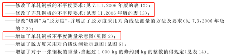 此次關(guān)于單軋鋼板不平度的修訂變化較大,主要有以下6個(gè)方面。