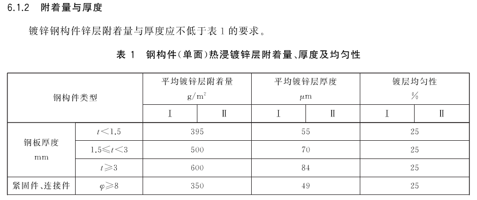 在國標GB/T 31439.1和GB/T 31439.2兩份標準中并沒有規定鍍層具體要求,而是引用另外一份國標:GB/T 18226-2015《公路交通工程鋼構件防腐技術條件》。