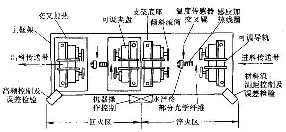 注:管材從右側進入,加熱奧氏體化后經過淬冷、輸出、回火。隨后被送到加工機床冷卻。