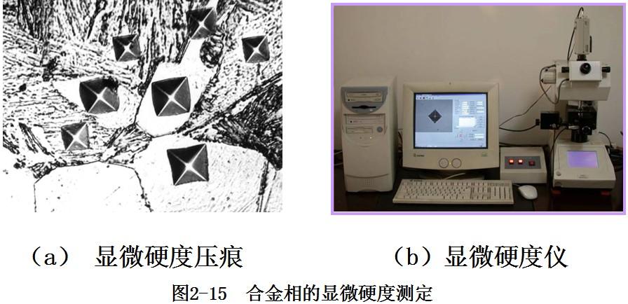 維氏顯微硬度, 簡稱顯微硬度, 是測量陶瓷和金屬合金中某一相微區(qū)的硬度, 如圖2-15所示。