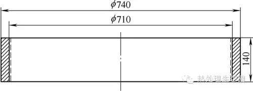 某型號風電增速箱用特大特輕軸承套圈材料為42CrMo,預處理為調質,硬度300HBW左右。零件尺寸規(guī)格見圖1,零件外徑與內經的比值為1.042。