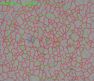 2、面積法:面積法是計算已知面積內晶粒個數,利用單位面積晶粒數來確定晶粒度級別數。該方法的精確度中所計算晶粒度的函數,通過合理計數可實現±0.25級的精確度。面積法的測定結果是無偏差的,重現性小于±0. 5級。面積法的晶粒度關鍵在于晶粒界面明顯劃分晶粒的計數