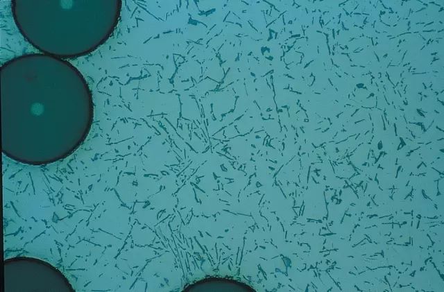 AlSi 中 B4C 纖維,纖維與基材之間的起伏。放大:200x