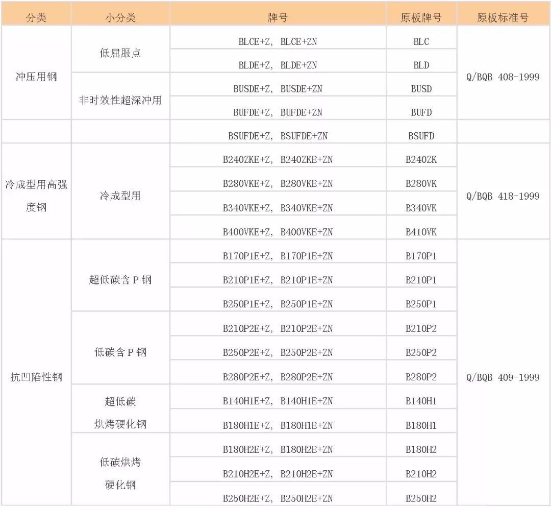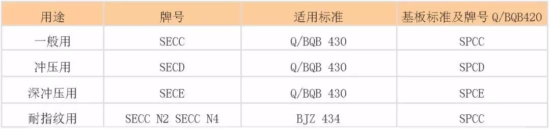 按加工性能分為:普通用途(PT)、機械咬合(JY)、深沖(SC)、超深沖時效(CS)、結構(JG);