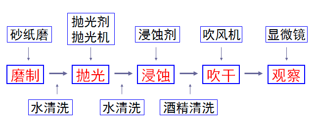 1.將拋光好的試樣磨面用化學浸蝕劑進行一定時間浸蝕;