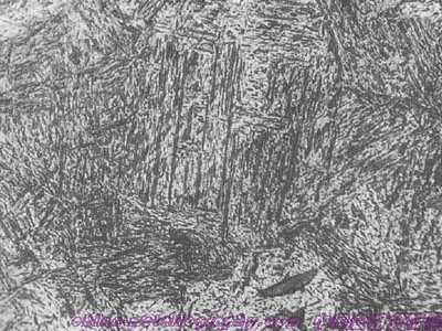 圖號:45-02 浸蝕劑:4%硝酸酒精 材料及狀態(tài):45鋼 處理:鍛造后正火處理 組織及說明: 圖45-01放大。 |
