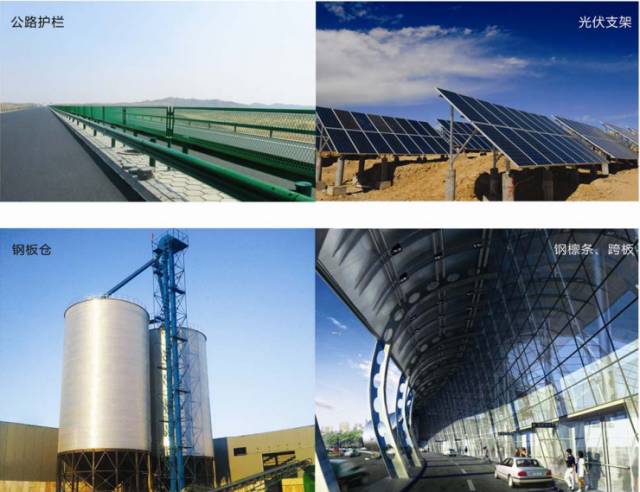 熱鍍鋅工藝廣泛用于鋼板、鋼帶、鋼絲、鋼管、結構件,零部件產品且其應用領域相當廣泛,如輕工、家電、汽車、建筑行業等。在汽車工業中,可用于汽車車體、外殼、內板、地板等;在家電和輕工方面可用于各類家電的外殼和地板;在建筑業中,用于各類工業及民用建筑的輕鋼龍骨、建筑層面板、瓦楞板、卷簾門等。