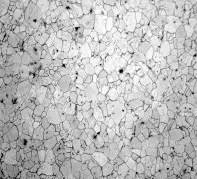 顯微組織:F+Fe3CⅢ,鐵素體(F)是呈亮白色的等軸狀晶純鐵的基體組織,主要為白色。鐵素體,晶粒均勻分布(6級),圖中黑色細條為晶界腐蝕線。