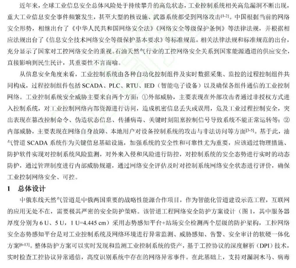 輸氣鋼管管道SCADA系統網絡安全策略探索與實現(以中俄東線天然氣管道工程為例)
