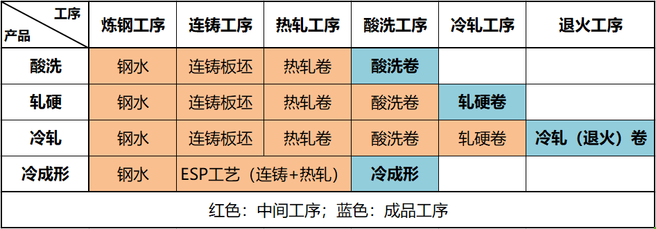 酸洗、軋硬、冷軋產品是傳統生產工藝中不同階段的產物,酸洗是熱軋去氧化皮的產品,軋硬是冷軋退火前的產品。
