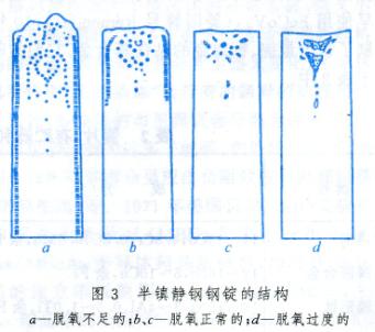 半鎮(zhèn)靜鋼在澆注過程中沸騰微弱,注完沸騰很快停止。因此其偏析比沸騰鋼鋼錠少得多,但比鎮(zhèn)靜鋼鋼錠大。