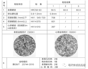 按滲碳的質量檢測就可以。主要是表面硬度,心部硬度,硬度梯度,金相組織內,氧化等標準。