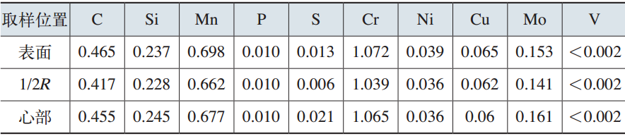 表2  鍛坯調(diào)質(zhì)后成品化學(xué)成分(質(zhì)量分?jǐn)?shù))  (%)